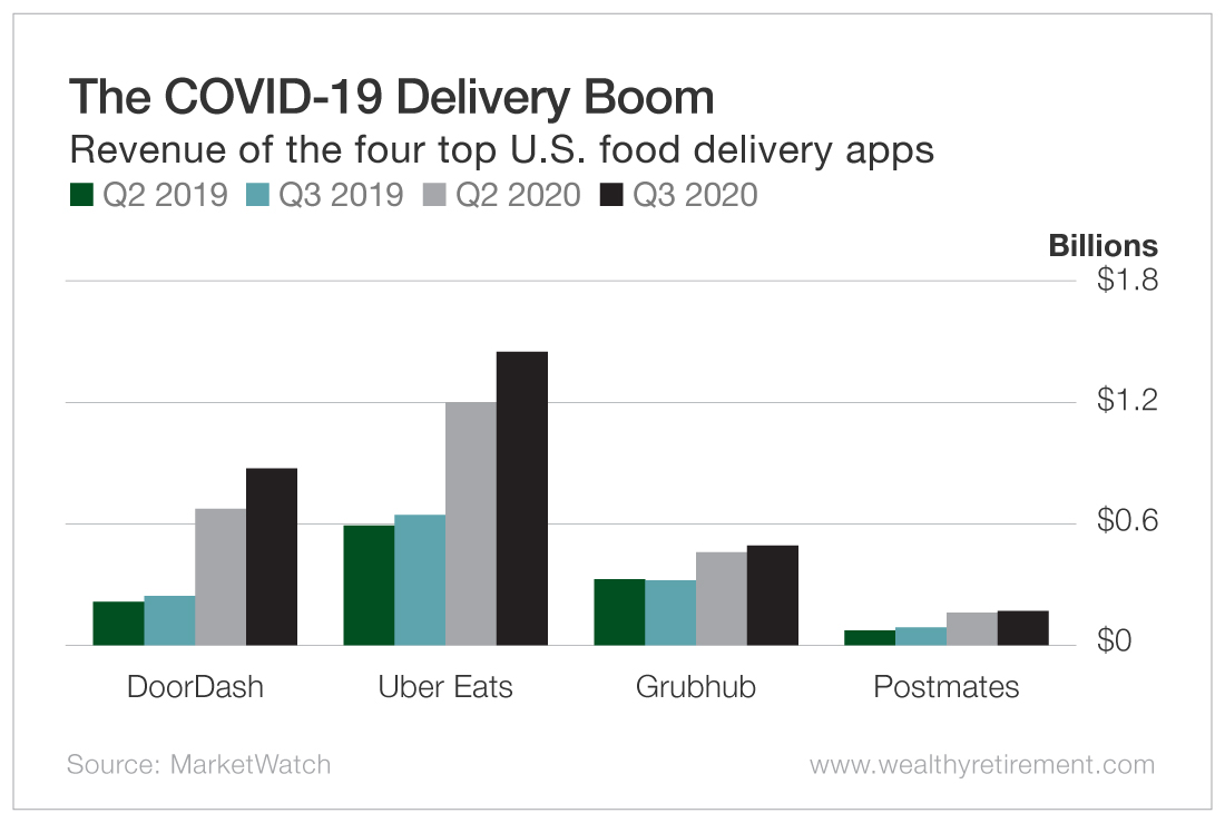 Its peers in the restaurant delivery business also saw historic growth – a collective revenue boost of $3 billion in the second and third quarters of 2020.
